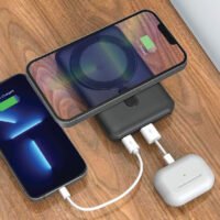 10,000 mAh Magsafe wireless power bank. Light-up logo.