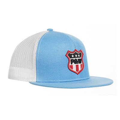 6 Panel High Profile snapback styled hat. Acrylic front with mesh back. Flat visor, polyester sweatband and plastic closure. Complete customisation of colour scheme and branding. MOQ of 250 pieces