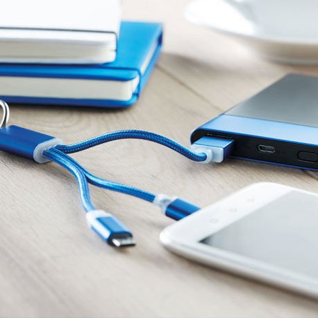 Key ring with compatible charging cables for android and i-phones along with type-C.