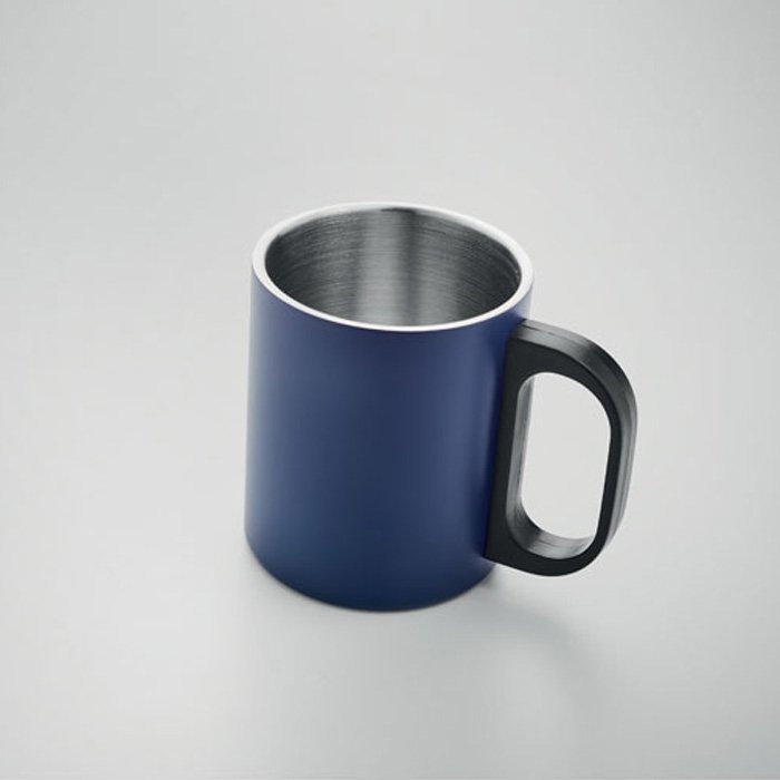 Double wall stainless steel mug with PP handle. Capacity: 300 ml. Start the day in good fashion with a nice cup of coffee or tea. This stainless steel mug with simple design will help you do just that.