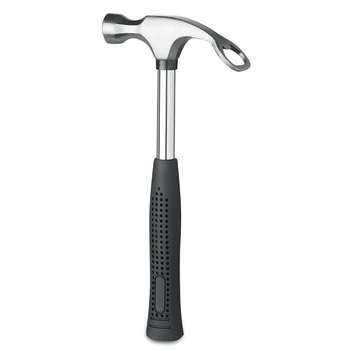 Hammer and bottle opener made of carbon steel. Handle in TPR thermoplastic rubber.