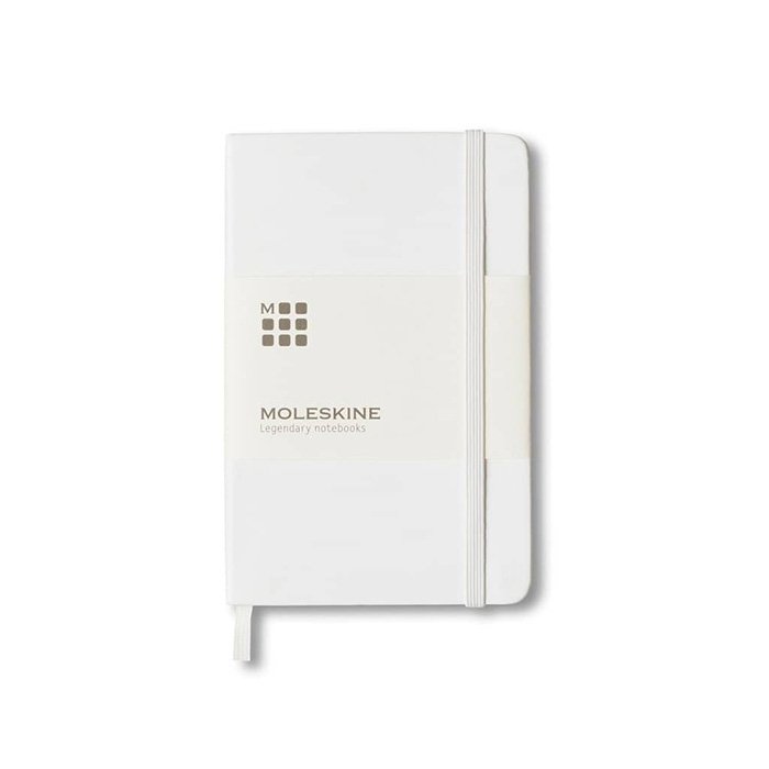 Hardcover pocket-sized notebooks from Moleskine® Italy with elastic closure and bookmark ribbon. FSC certified acid free paper, inner pocket. Size: 9 x 14 cm. 240 pages