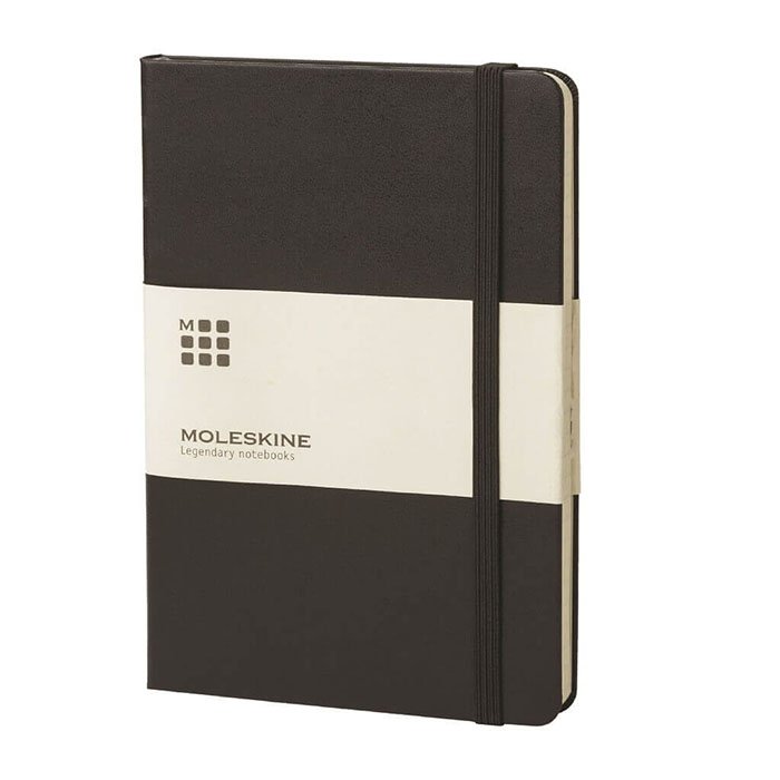 Hardcover notebooks from Moleskine® Italy with elastic closure and bookmark ribbon. FSC certified acid free paper, inner pocket. Size: 19 x 25 cm. 192 pages