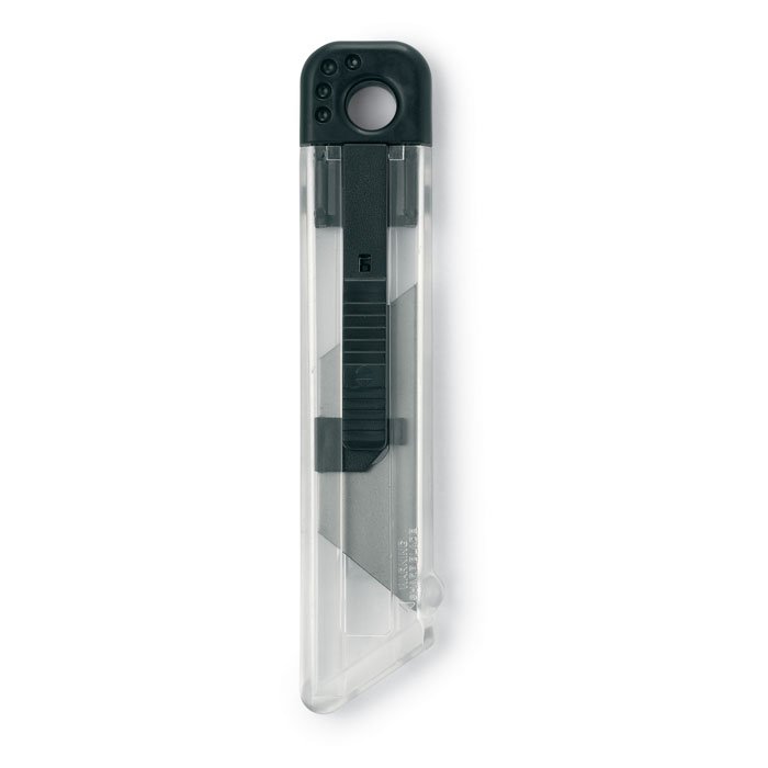 Retractable knife. Clear finish and coloured body.