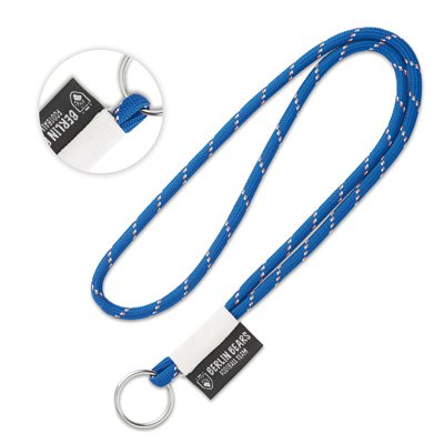 1 colour embossed logo included. Round 3-tone polyester, with keyring and PVC badge (personalised colour). Size 45cmx2 / 0,5cm (dia).