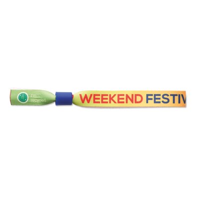 Full colour wristband made of 100% recycled PET (RPET) with single use security closure. Size 34×1.5cm. 50 pcs per polybag.