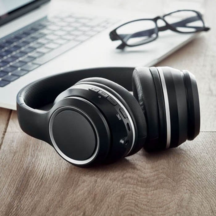Active noise cancelling (ANC) foldable wireless headphone in ABS. Listen to your favourite music without interference of noise coming from your surroundings. It has a built in microphone so you can make and take calls with it hands free. The active noise cancelling technology will detect sounds around you and will actively filter them out. Connect the wireless headset to your smartphone or computer and control music and calls with the physical buttons on the headphone itself. It has a rechargeable Li-ion 500 mAh battery, which is good for approximately 17 hours of playing time. It includes micro USB charging cable. The headphone is presented in PU pouch for protection and easy transportation. Operating range: 10 m.