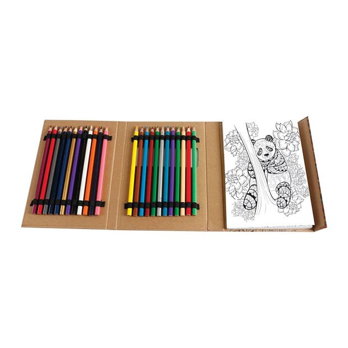 Tri Fold Kraft Coloring Book with 24 pcs Coloring Pencils and 50sheets 100GSM coloringpad which can be enjoyed by kids to adults.