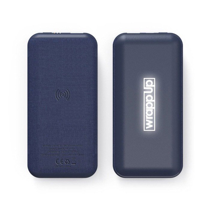 10,000 mah wireless power bank with a light-up logo branding. Beautiful fabric PU leather on one side and smooth ABS finish on the other side. Presented in an attractive giftt box.