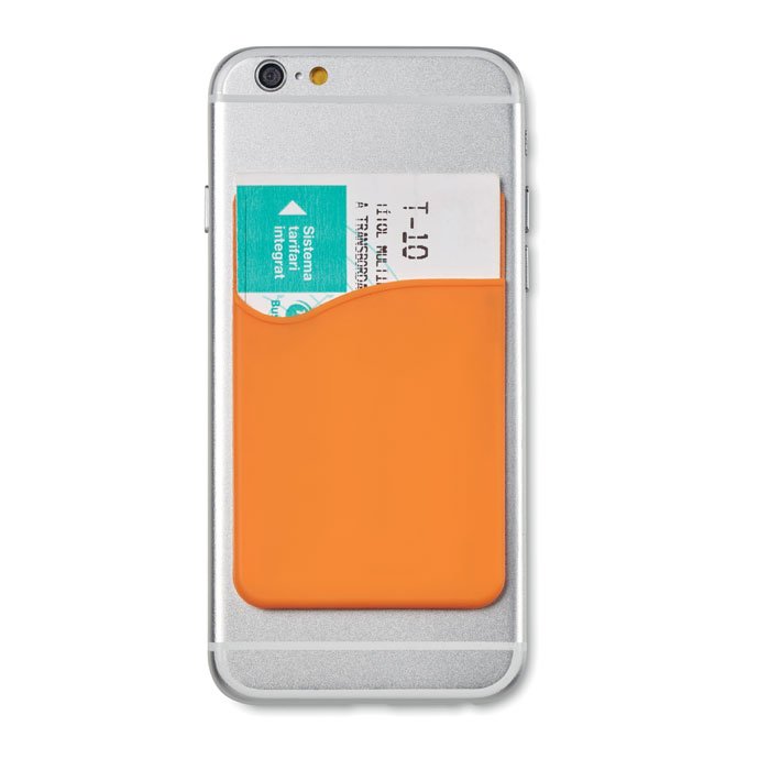 Simple silicone card holder with tape to attach it to the back of the smartphone.