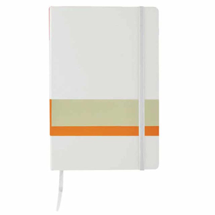 A5 size notebooks with hard PVC cover, pen loop, elastic closure and matching bookmark ribbon. 192 pages in 70 gsm. Expandable inner pocket. Packed in indivual paper sleeves