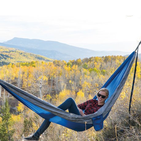 Hammock with integrated mosquito net. Made in lightweight and strong nylon material. For easy set up the strap and carabineers are included. This hammock can hold up to 200 kg.