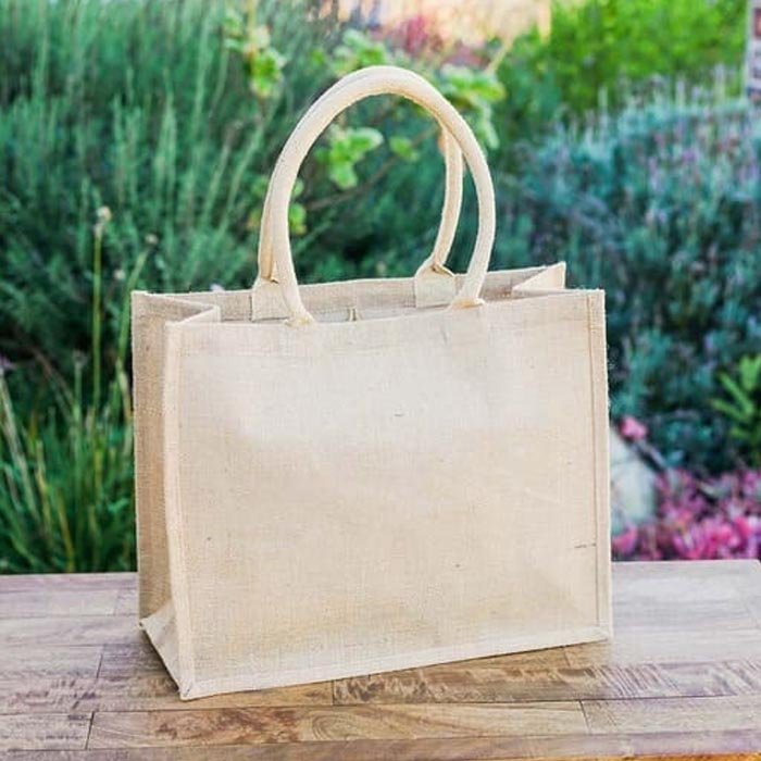 Wos is a horizontal jute bag with rope handles and a strong built quality. Durable and re-suable it can support any complement initiatives. Size 33 x 43 x 12 cm
